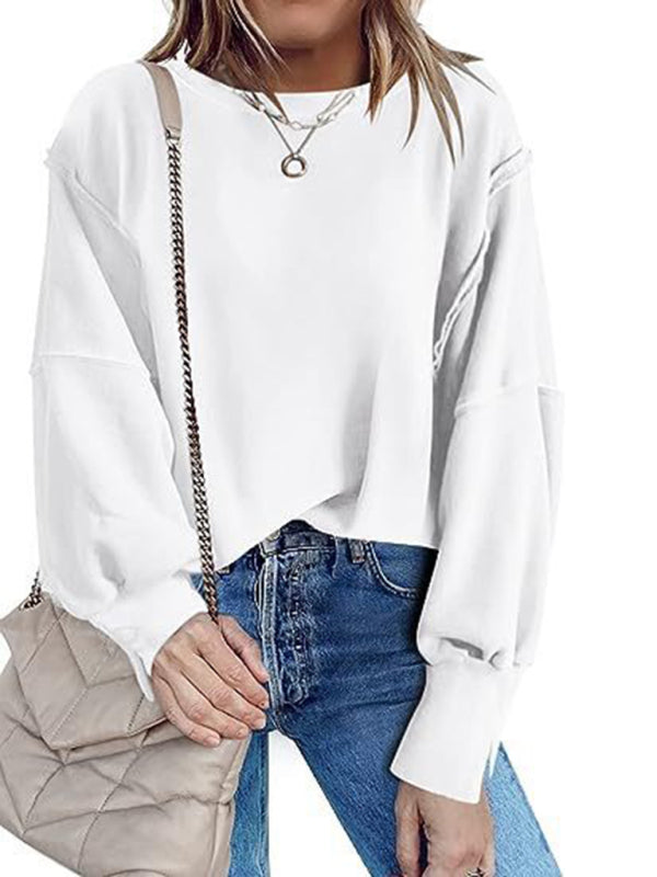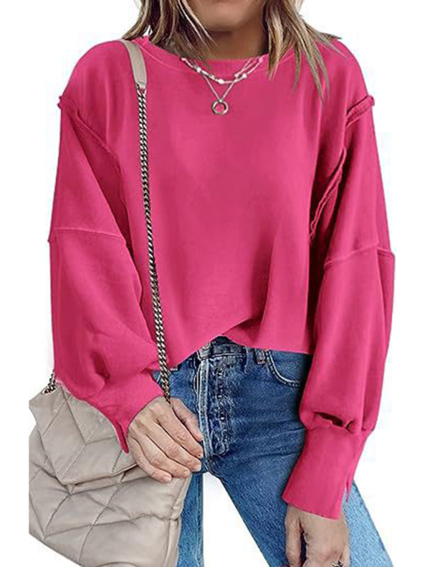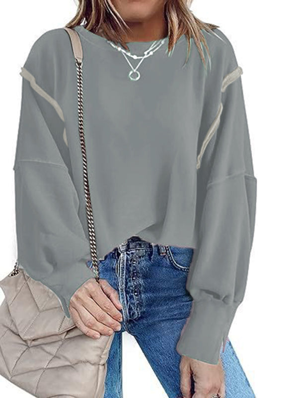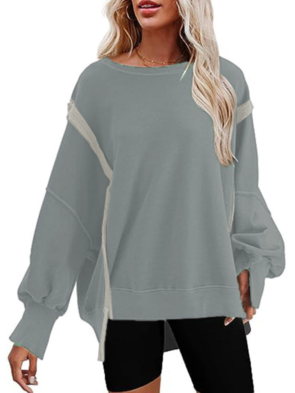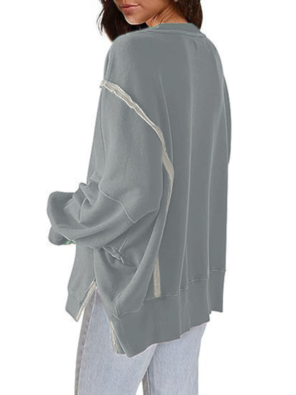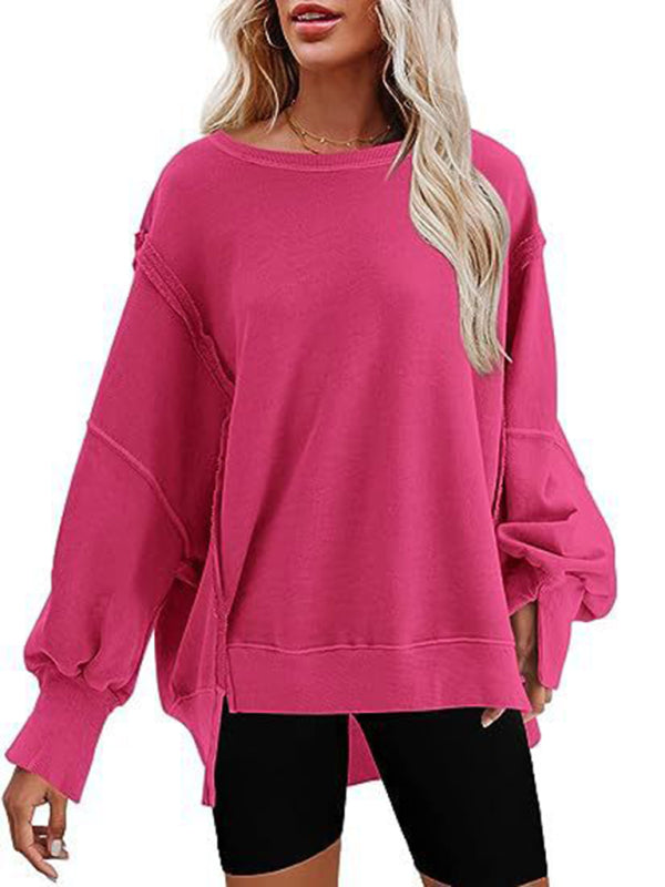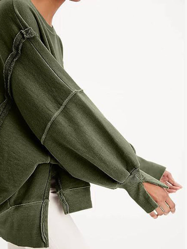 Effortless Chic: Women's Round Neck Loose Side Slit Long Sleeve Sweatshirt