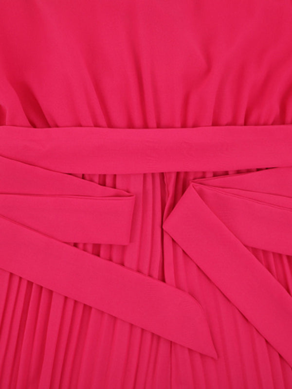 Women's Sleeveless V Neck Ruffle Lace Pleated Jumpsuit