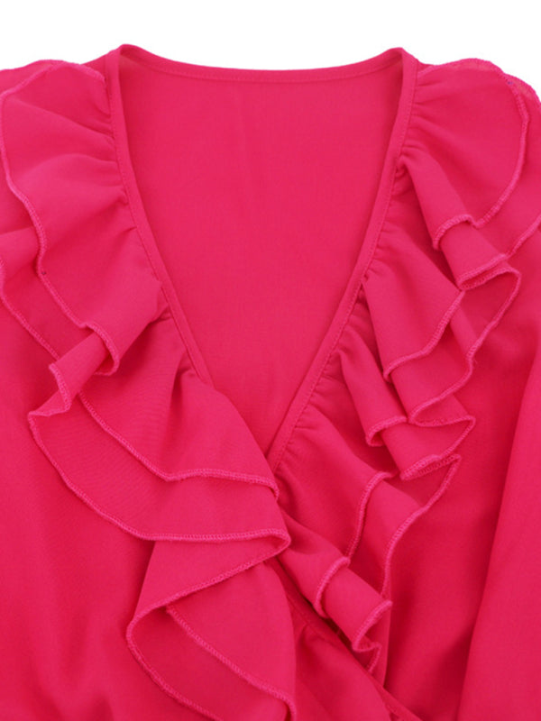 ✨ Chic & Stylish Sleeveless V-Neck Ruffle Lace Jumpsuit – Perfect for Spring & Summer ✨