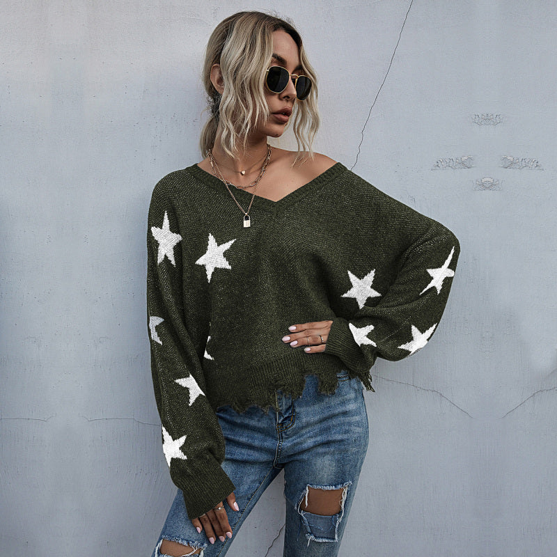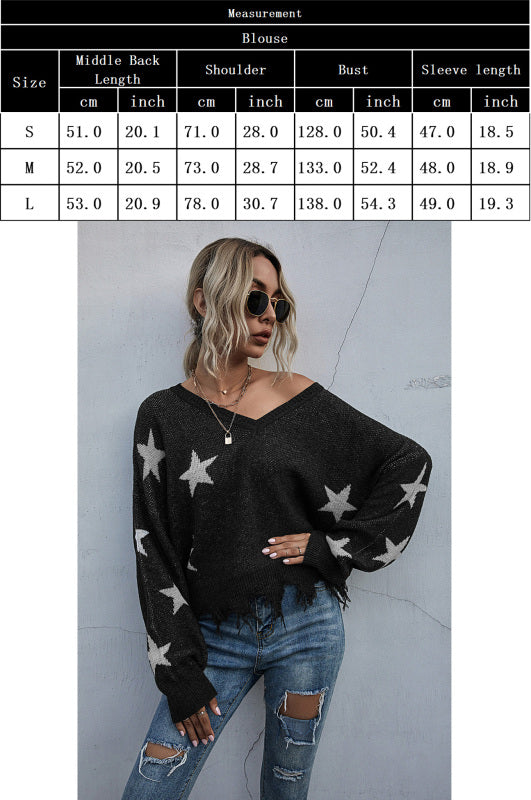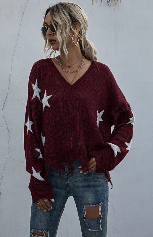 ✨ Cozy Star Knit Sweater V-Neck Fringe – Trendy Fall Must-Have ✨