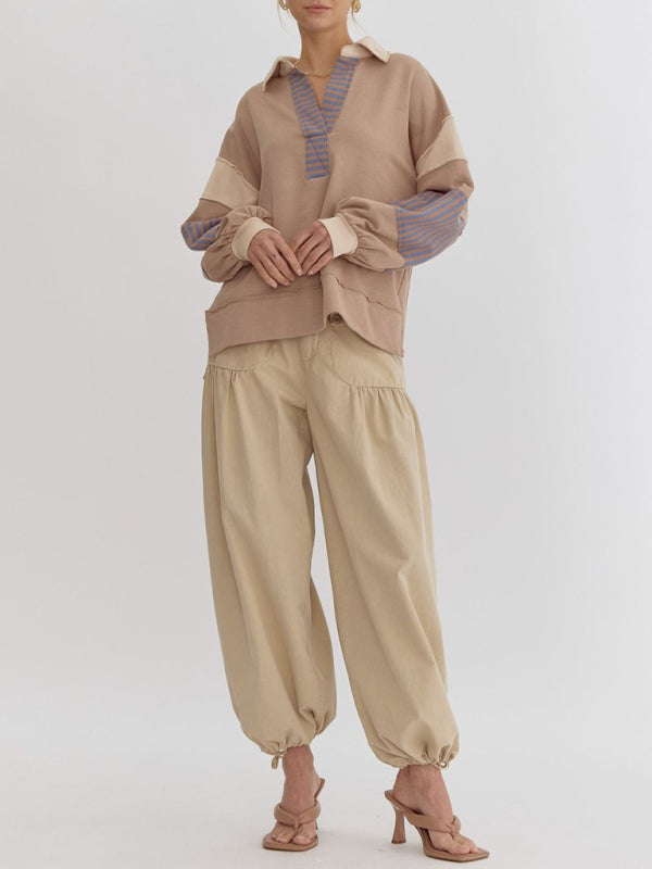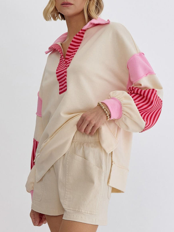 Women's Oversized Polo Neck Striped Sweatshirt β Cozy, Chic & Effortlessly Cool