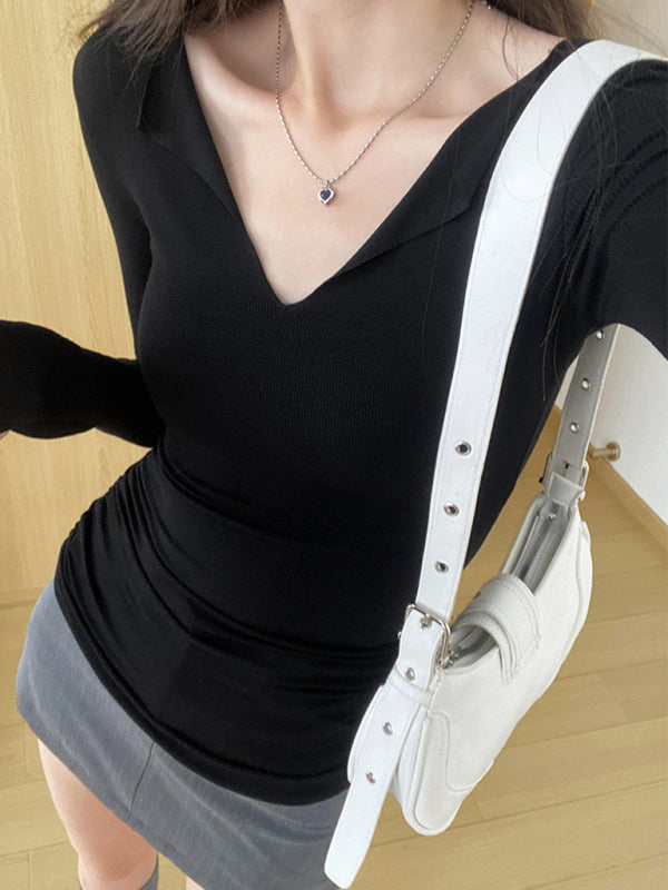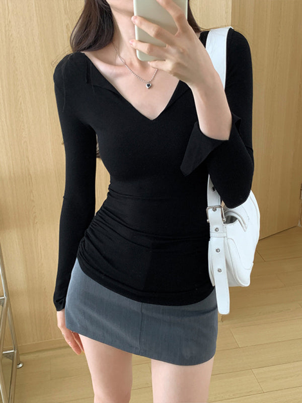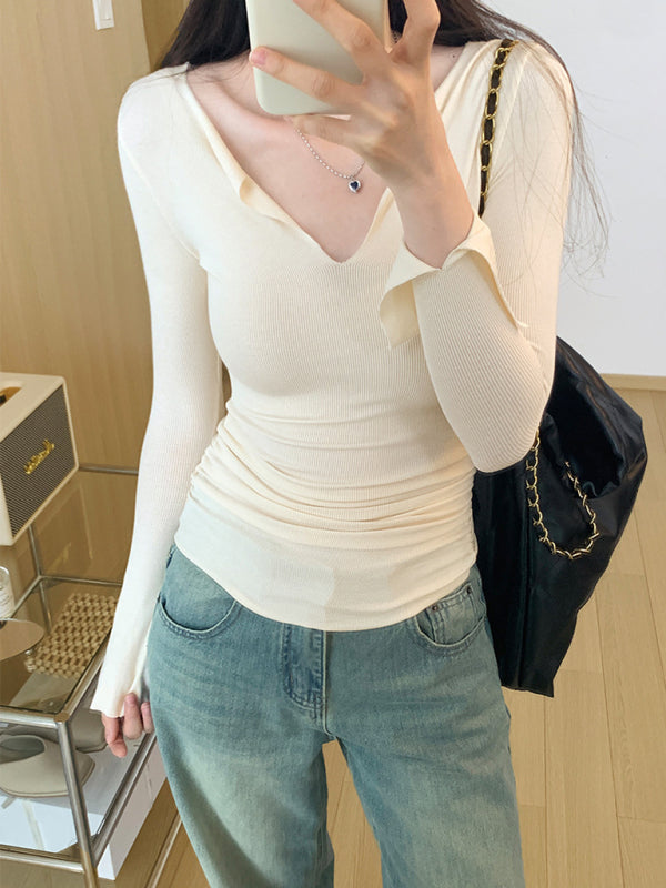 Women's V-Neck Bell Sleeve Slim Knitted Top β Chic, Sleek & Oh-So-Stylish!